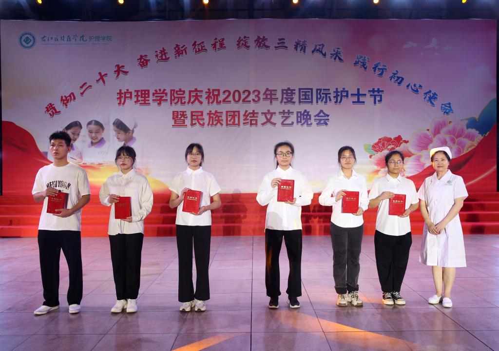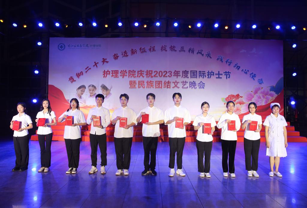 5月20日晚,鸭脖护理学院举办“贯彻党的二十大精神,奋进新征程,绽放三精风采,践行初心使命”国际护士节暨民族团结文艺晚会。
