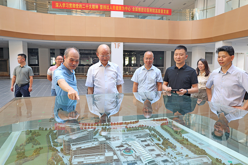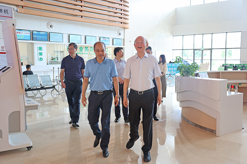 7月1日下午,周宏灏院士科研团队先后来到了附属附院(临床医学院)总院区和百东院区,实地考察指导了科技创新与转化中心和临床科室。附属医院(临床医学院)党委书记林栩向周宏灏院士详细介绍了医院“一院两区”的建设情况。YABO鸭脖官网附属(临床医学院)始终扎根革命老区,经过四十多年的发展,已成为桂滇黔三省交界区规模最大、面向东盟、国内知名、省内一流、特色鲜明的医疗、教学、科研中心和大型现代化三级甲等综合医院。医院现建有两大院区(总院区、百东院区),开放床位3500张,拥有高级职称专家近500人,硕博研究生近500人,建有省级重点实验室1个,省级工程研究中心1个,广西卫健委重点(含重点培育)实验室4个,国家中医药管理局二、三级实验室2个,广西高校重点实验室2个和博士学位授权点建设一级学科、硕士学位授权点一级学科、广西一流学科(培育)、广西重点学科、广西临床重点专科、广西医药卫生重点学科、广西妇幼健康重点学科、广西博士后创新实践基地等系列高水平科研平台50多个。
