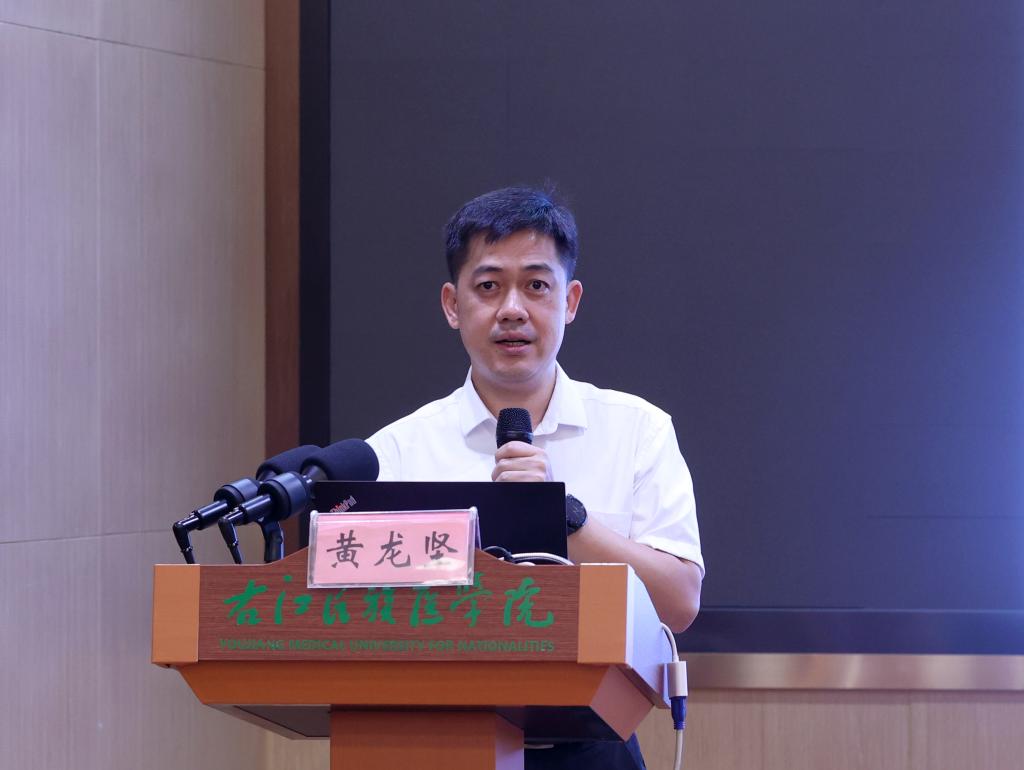 鸭脖党委常委、副校长、广西青年岗位能手、优秀教育工作者黄龙坚作《广西中药资源及产业发展的探索》专题讲座。