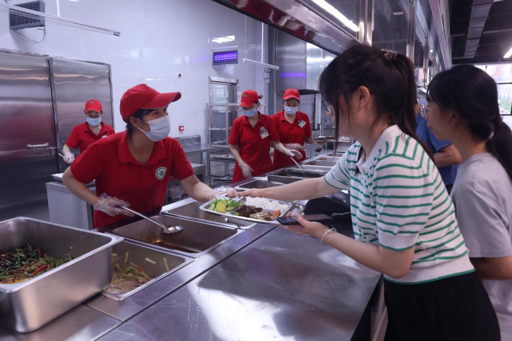 期间,全体校领导也来到百东校区视察工作,走进食堂,与师生同学们一同用餐,询问他们对饭菜质量、价格、口味、食堂卫生服务等方面的意见。校领导表示,百东新校区建设是多年来全校师生员工的共同期盼,现在新校区试运行,说明学校的食堂已经具备了为新校区师生提供餐饮服务的能力和条件,希望全体教职员工在新校区开启幸福学习和生活的新篇章,踏上学校“更大申博”,建设新时代区域性高水平医科大学的新征程。