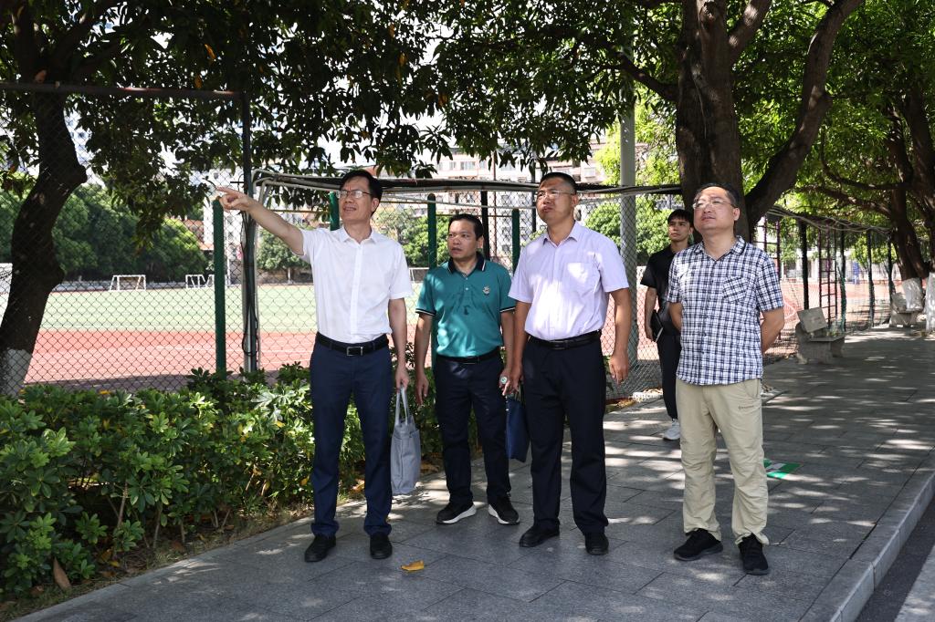 在中心校区和百东校区,调研核查组一行深入鸭脖教学楼、学生宿舍、文化长廊、食堂、球场等地进行实地查看,重点核查项目前期工作完成情况、建设情况与资金落实情况等,对学校建设遇到的困难和问题提出建设性的意见和建议。