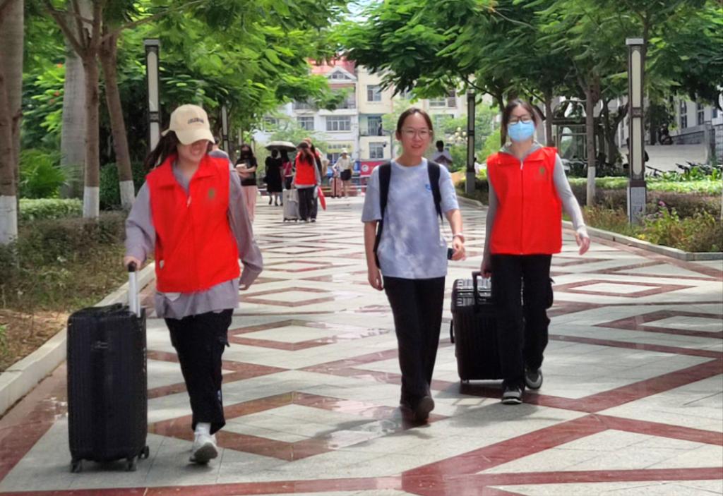 2日上午,在百城校区,师生志愿者早早守候在校门口,信息登记、解答问题、行李搬运……他们穿梭在校园的各个角落,为返校学子送上校园里的第一份温暖,成为校园里一道靓丽的“红色风景线”。