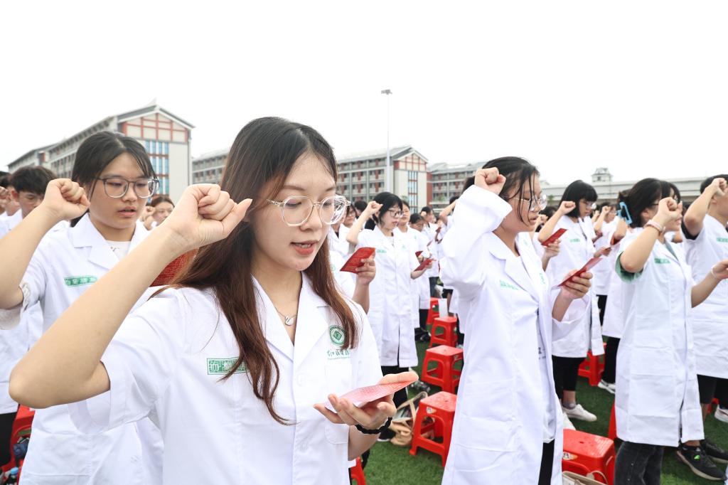 全体新生在2023级临床医学专业本科覃思涵同学的领誓下,共同宣读医学生誓词。全场齐声发出了“为祖国医药卫生事业的发展和人类身心健康奋斗终生”的铮铮誓言。