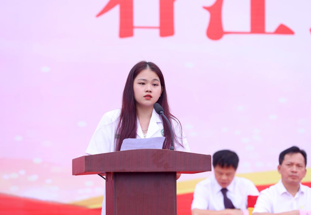 医学检验学院2023级医学技术专业唐紫梦同学代表全体研究生发言。她表示,要坚持以习近平新时代中国特色社会主义思想为指导,努力做到明确目标,积极创新;博采众长,厚积薄发;修身立德,志存高远,在新的起点上,永怀赤子之心、积极进取、主动作为,为学校“更大申博”贡献青春力量。