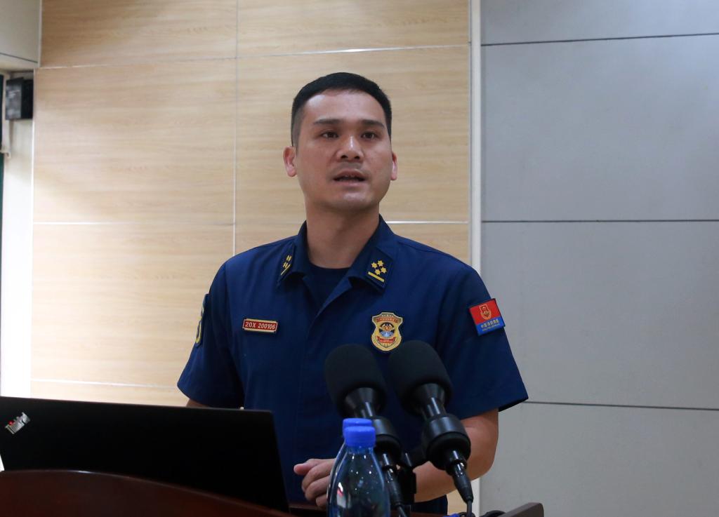 百色市消防救援支队特勤站站长高翔为鸭脖师生作消防培训