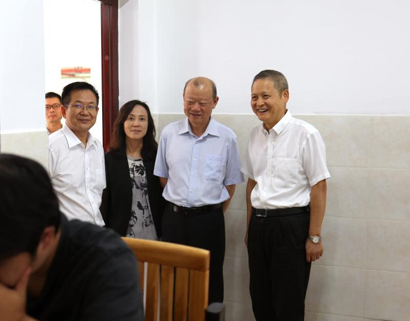 9月14日下午,自治区人大常委会委员、教科文卫委主任委员黄宇到鸭脖百东校区调研。图为黄宇主任(右一)在检查师生课堂情况。