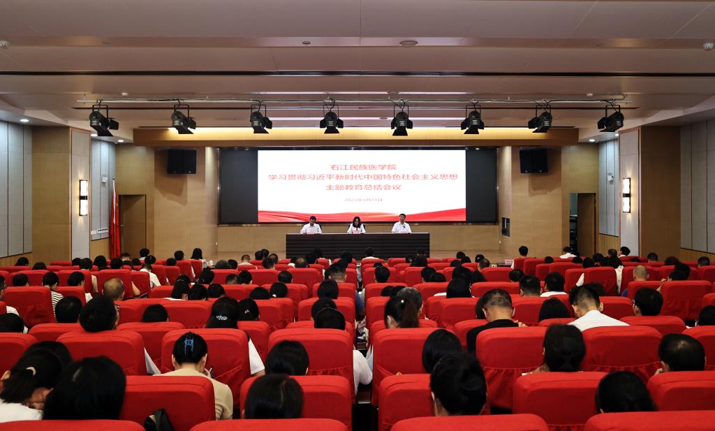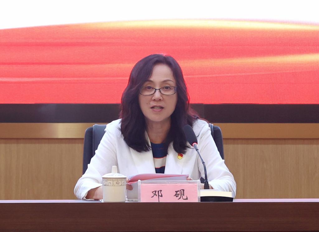 邓砚围绕“扎实开展主题教育走深走实”、“主题教育取得实实在在成效”、“主题教育的主要经验”三个方面对学校深入开展主题教育进行了全面回顾和总结,对继续做好下一步工作进行了全面部署。她指出,自主题教育全面启动以来,学校党委深刻领会开展主题教育的重大意义、深刻内涵、实践要求,坚持把深入开展主题教育作为重大政治任务,坚决落实党中央、自治区决策部署,超前谋划、高效落实,围绕建设新时代区域性高水平医科大学服务中国特色社会主义新时代壮美广西目标任务,结合扎根老区守护边疆民族地区健康的办学特色,将理论学习和推动教育高质量发展有效结合,通过“学”字当头、“诀”字为本、“融”字为要、“改”字贯穿、“建”字为基、“谋”字当先,跑出贯彻落实新速度,推动全校主题教育强劲开局、高效推进。