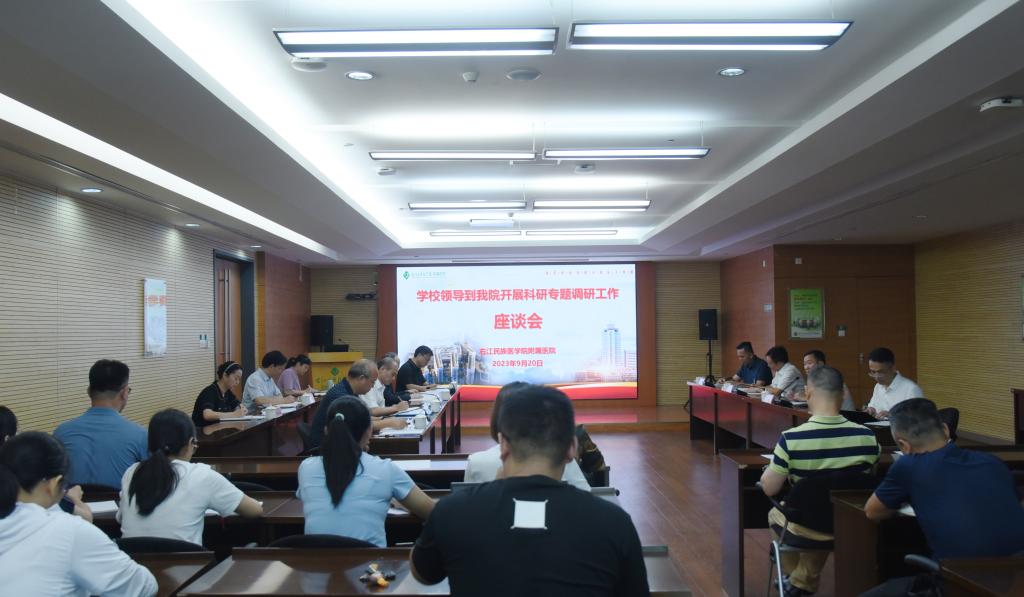 鸭脖校长办公室、科技处负责人,直属附属医院、附属西南医院领导,与科研工作相关科室人员参与座谈。