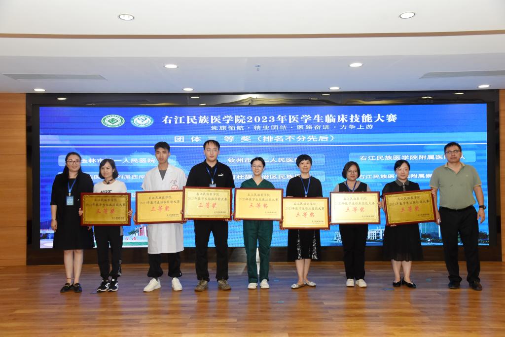 学校教务处副处长尹毅霞,附属梧州医院(梧州市人民医院)党委常委、副院长龚义伟为团体三等奖团队颁奖。