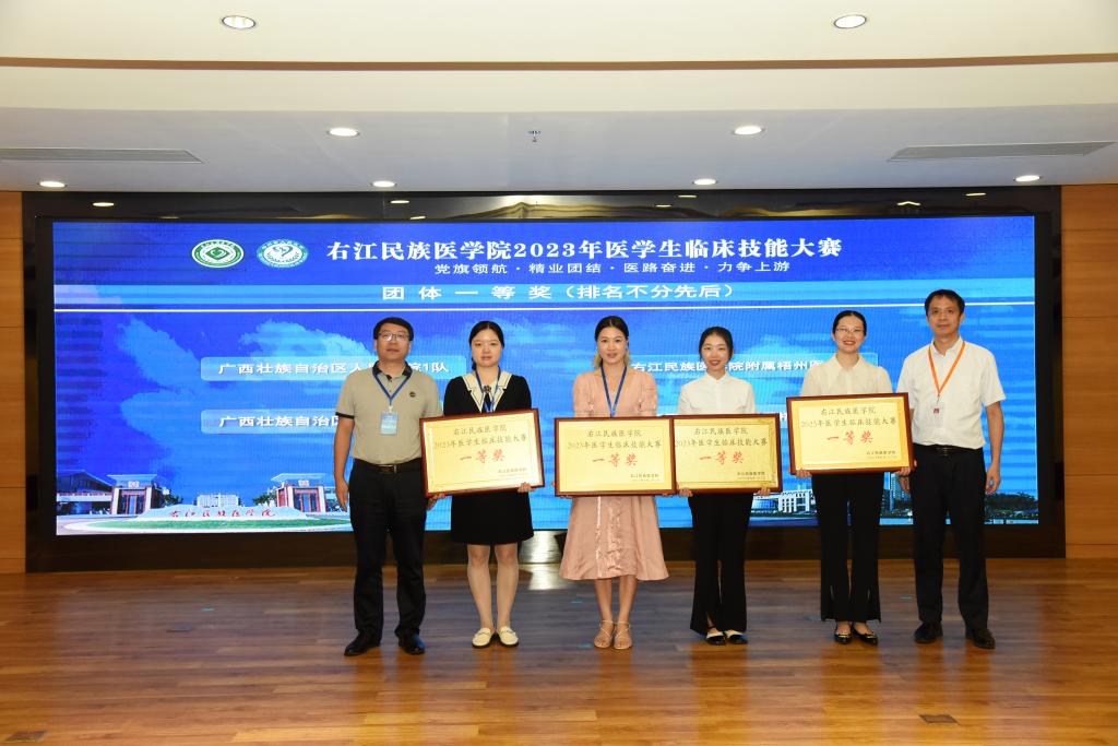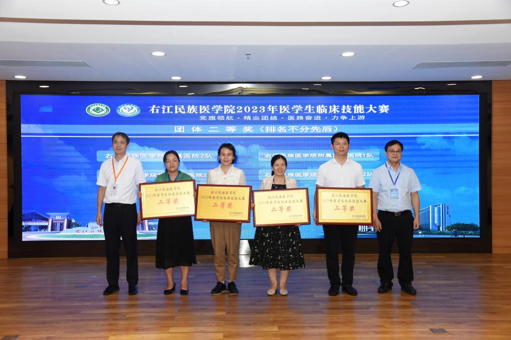 学校教务处处长韦忠恒,附属梧州医院(梧州市人民医院)党委书记刘俊为团体二等奖团队颁奖。