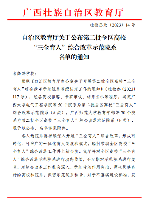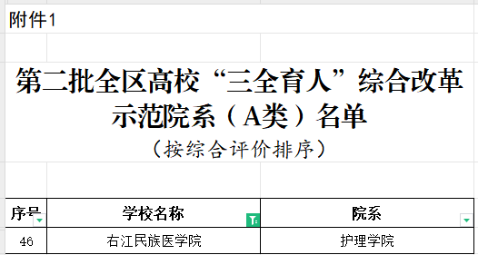 近日,自治区教育厅正式公布第二批全区高校“三全育人”综合改革示范院系名单,鸭脖护理学院、基础医学院荣获自治区教育厅第二批全区高校“三全育人”综合改革示范院系。