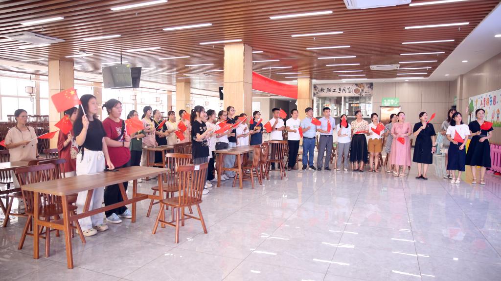 在月饼烤制过程中,同学们还开展了歌唱《我和我的祖国》快闪活动,大家挥舞着手中的国旗放声高唱,用自己最真挚的感情为新中国七十四华诞送上最美好的祝福。