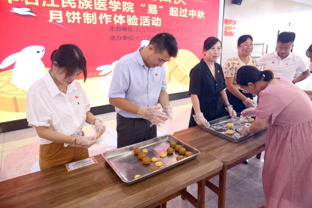 金桂飘香,花好月圆,在中秋佳节即将来临之际,9月27日上午,学校党委学生工作部(处)在百城与百东两个校区分别设置“一站式”学生社区服务站,开展月饼制作体验活动,学生工作部(处)、学校餐饮服务中心相关负责人,师生代表参加体验活动。