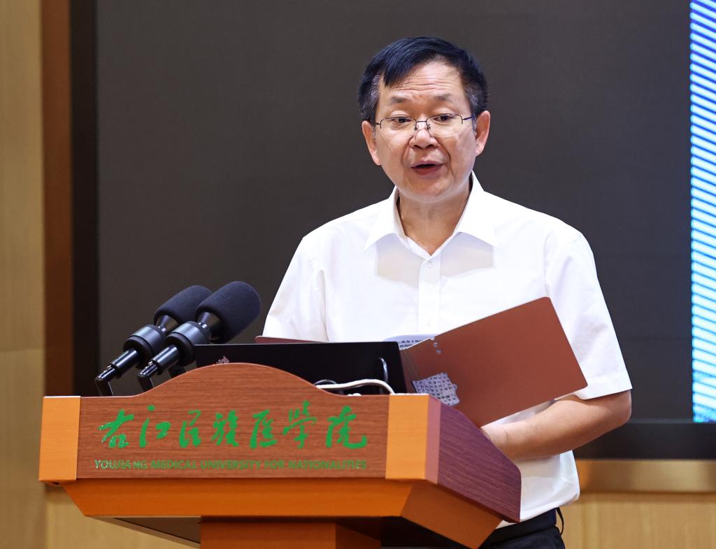 学校党委副书记、校长李雪斌在开幕式上致辞,他代表学校全体师生员工对参会人员的到来表示热烈的欢迎,并向长期以来关心、支持和帮助学校各项事业发展的各级领导、各位专家和同道们表示衷心的感谢。李雪斌校长指出,文学是人类历史的最形象的诠释,也是各国各民族文化文明交流的重要方式与载体,希望在党的二十大精神的指引下,我们都能够站在国家发展、民族复兴的角度去看待和推动外国文学和外语专业教育的发展,特别是从事外语教学与研究的老师们,要发挥外语专业特有的人文性、综合性,跨学科、跨文化的特质,积极应对当前人工智能时代带来的巨大冲击。李雪斌校长希望鸭脖的老师和同学们,能以本次年会和研讨会为契机,加强与广西区内外高校外国文学教学与研究的交流合作,共同促进外国文学教学与研究的发展,进一步汇聚起鸭脖新医科与新文科教育创新发展的合力。