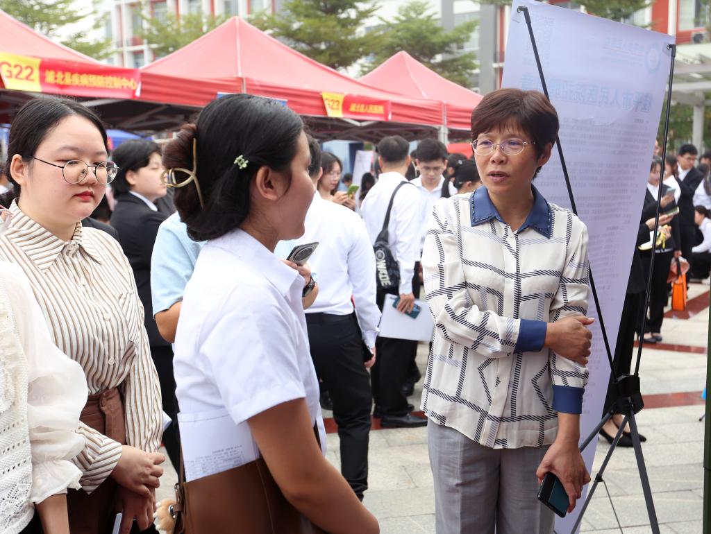 赵丽娟副书记与现场求职的毕业生亲切交流。