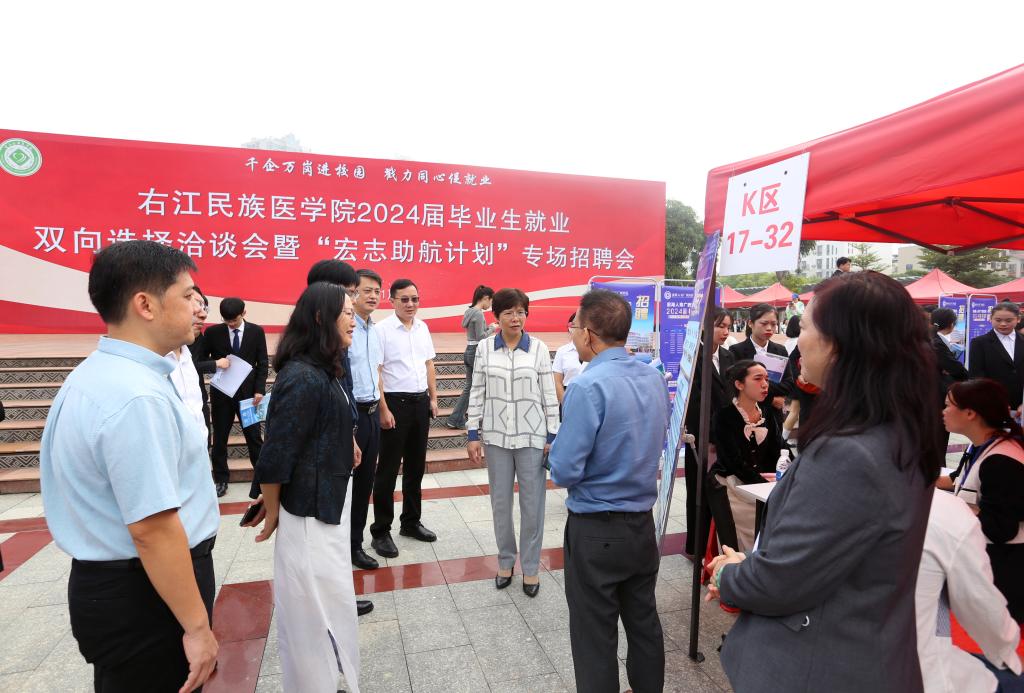 赵丽娟副书记还与现场求职的毕业生亲切交流,询问他们的求职意向,鼓励他们要从实际出发选择职业和工作岗位,要学有所用、学有所为,尽早明确职业意向、尽早实现就业,在更广阔的舞台展现右医学子的优良风貌,实现自己的人生价值。
