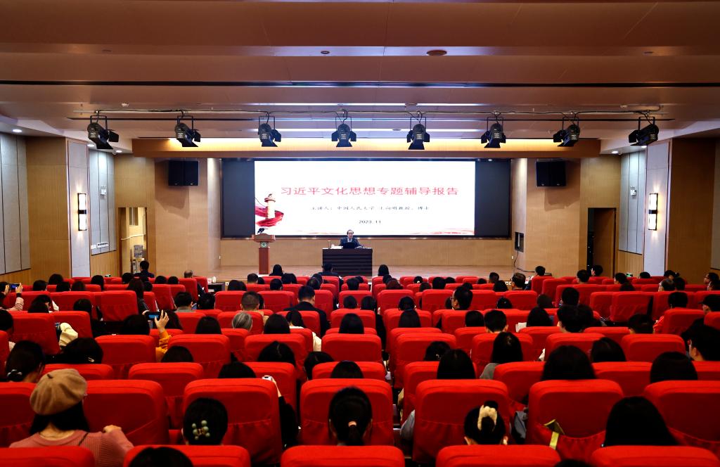 2023年10月7日至8日,全国宣传思想文化工作会议在京召开。会上传达了习近平总书记对宣传思想文化工作作出的重要指示,并首次提出习近平文化思想。为深入学习贯彻会议精神,深刻领会习近平文化思想,切实增强做好新时代新征程学校宣传思想文化工作的责任感、使命感,推动各项工作落地见效。11月13日下午,学校党委邀请中国人民大学马克思主义学院王向明教授到鸭脖开展了一场精彩生动的习近平文化思想专题辅导报告。