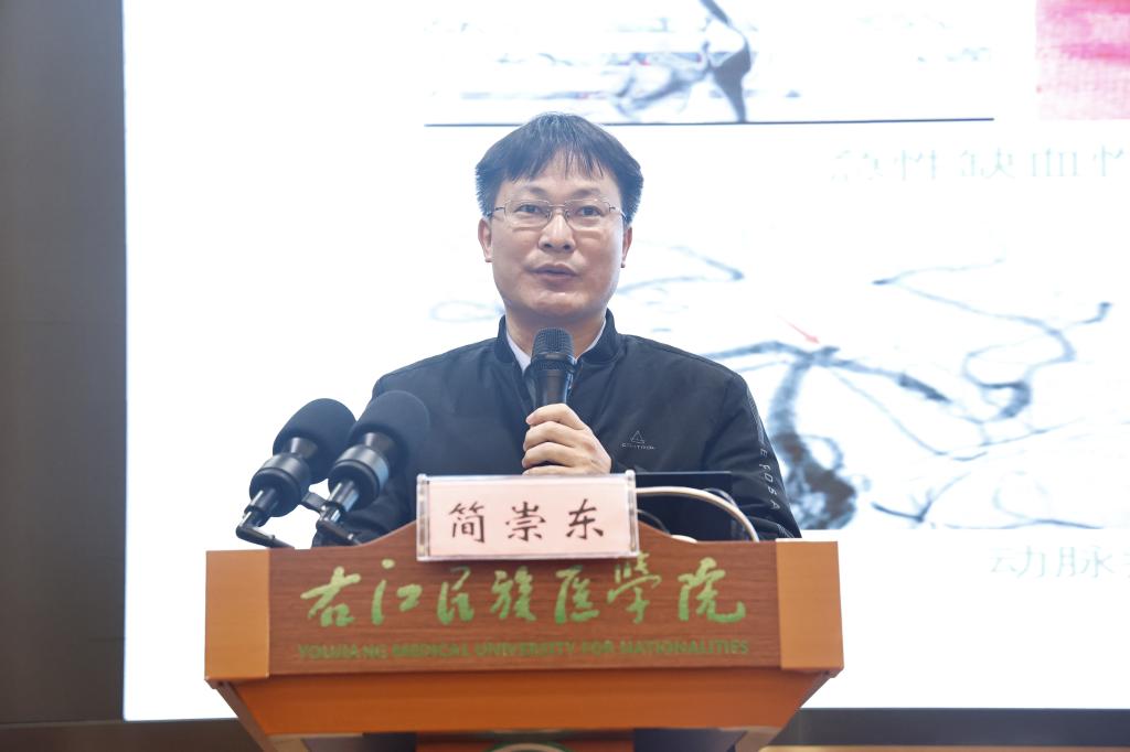 YABO鸭脖官网附属医院组织人事科科长兼神经内科重症监护病房主任兼百东院区神经内科主任简崇东教授作《颅内动静脉畸形介入治疗策略》专题讲座。