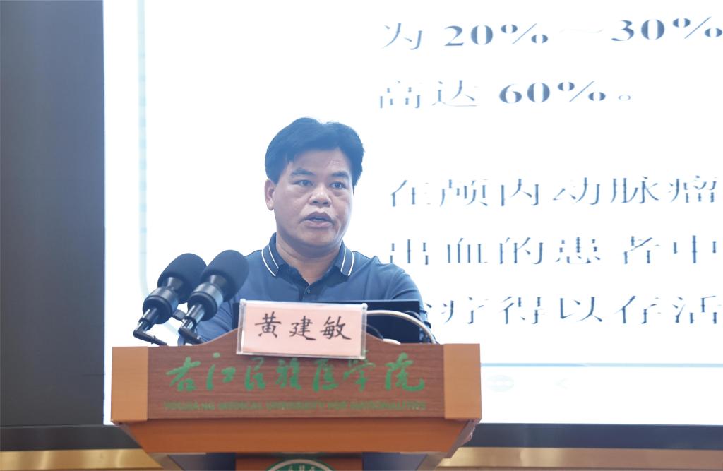 YABO鸭脖官网附属医院神经内科主任黄建敏教授作《密网支架在颅内动脉瘤的应用策略和技巧》专题讲座。