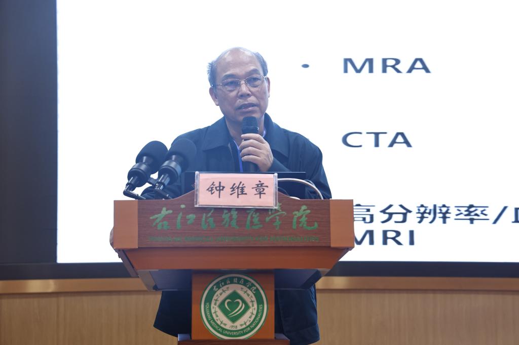 广西卒中学会副会长钟维章教授作《颅内动脉粥样硬化性狭窄诊疗新进展》专题讲座。