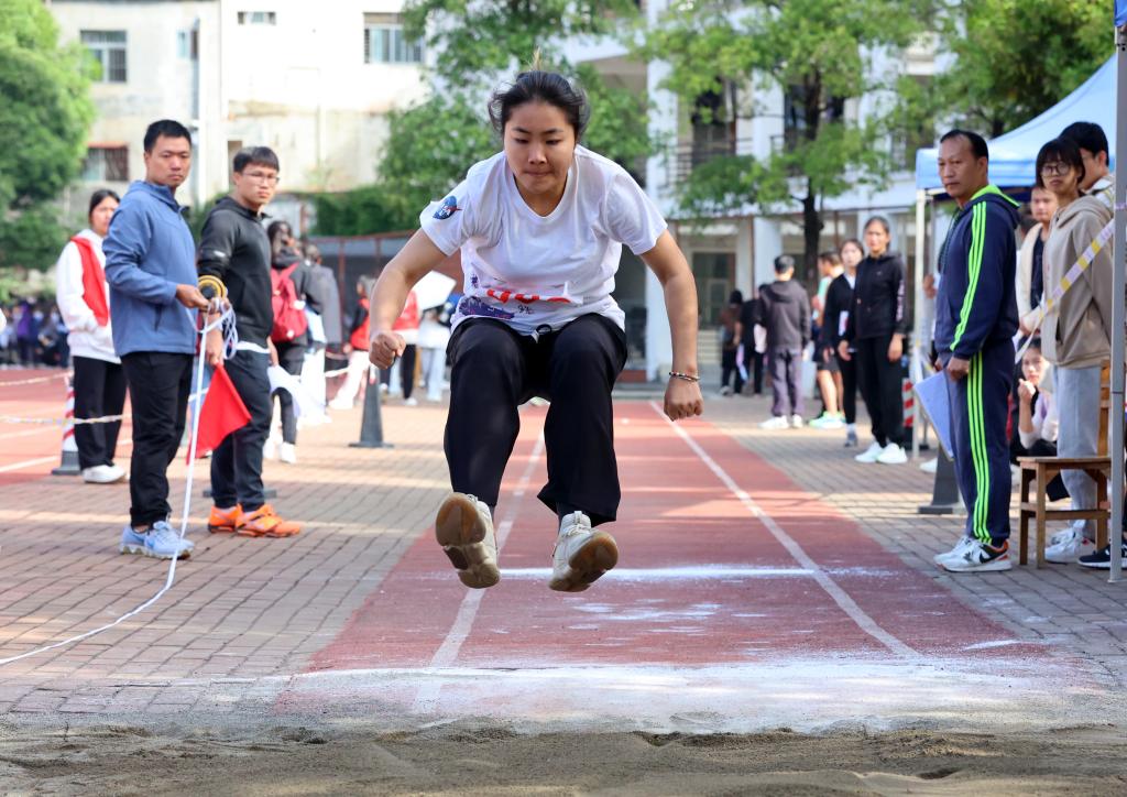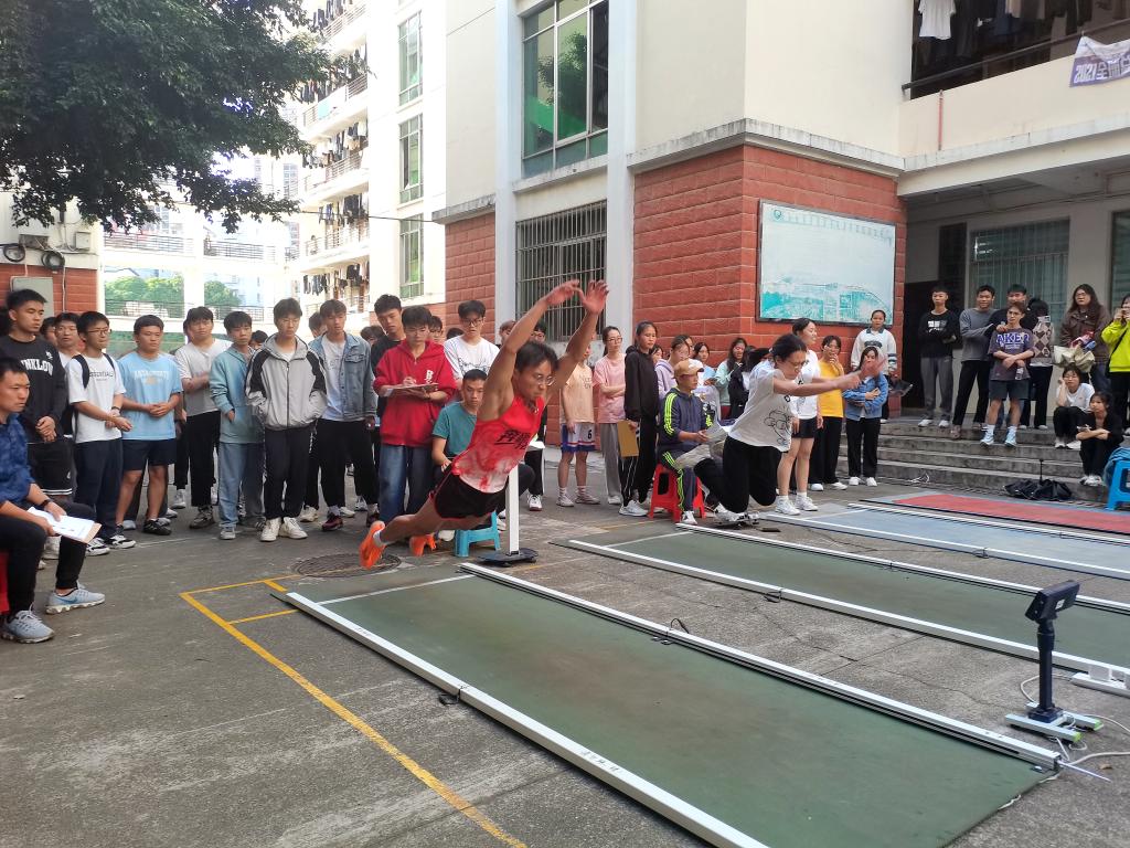 男女子立定跳远现场。