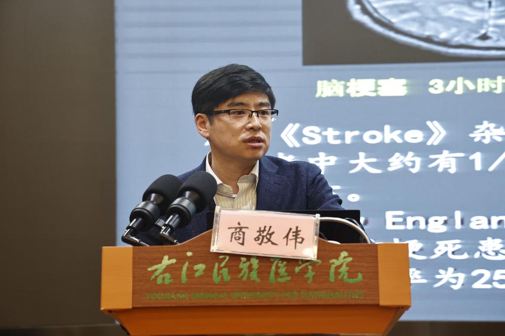 右医民族医学院附属医院神经内科副教授商敬伟博士作《浅谈脑梗塞不同时期的治疗方法》专题讲座。