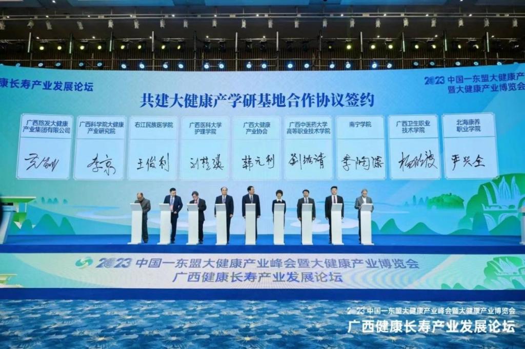 2023年中国-东盟大健康产业博览会由国家中医药管理局、广西壮族自治区人民政府联合主办,来自中国及东盟国家的产业领袖、专家学者以及大健康产业的关键参与者齐聚一堂,聚焦医疗科技创新、健康管理、跨境合作等领域进行深入探讨,参展企业超800家。鸭脖积极参展并签署广西大健康产学研基地合作协议,不仅提升了鸭脖广西新一轮一流学科、立项建设新增博士学位授予单位建设的社会影响力,还推动了鸭脖大健康产业与学术研究的深度合作,助力产学研全方位发展,为鸭脖生物医药与大健康现代产业学院的未来发展注入了活力。
