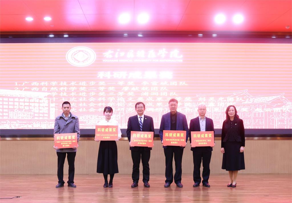 科研成果奖:广西科学技术进步奖一等奖李雪斌团队,广西自然科学奖二等奖廖献就团队,广西科学技术进步奖三等奖浦涧团队,广西第十七次社会科学论文类成果三等奖刘灵光团队,广西第十七次社会科学论文类成果三等奖武鑫团队,广西第十七次社会科学研究(调研)报告类成果三等奖赵云团队。