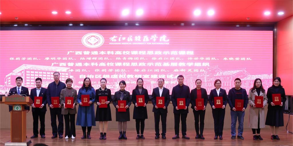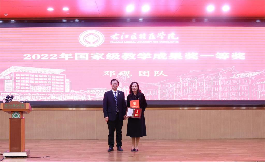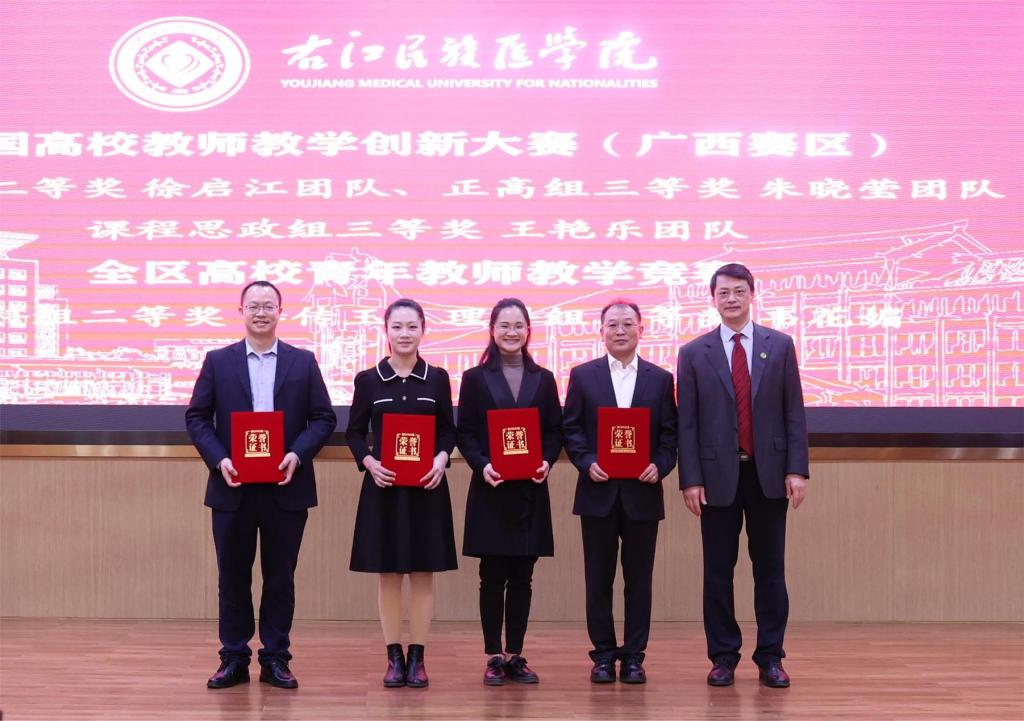 第九届全区高校青年教师教学竞赛:医科组二等奖李传玉团队、理科组二等奖韦花媚团队。
