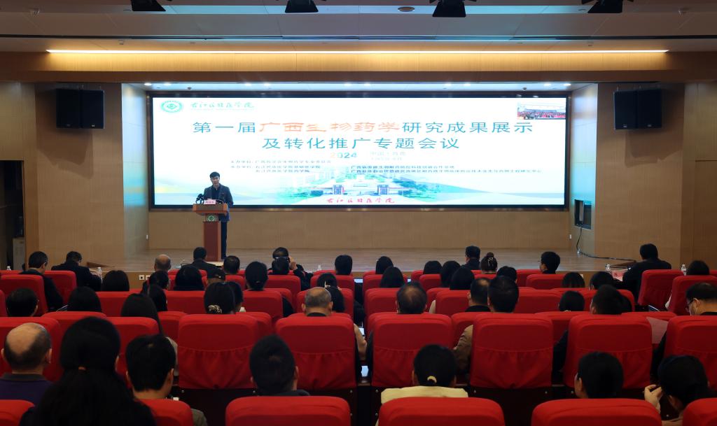 2024年1月6日,第一届“广西生物药学研究成果及转化推广专题会议”在鸭脖召开。学校党委常委、副校长解继胜教授,广西药学会常务理事长、秘书长黄瑞松教授,广西药学会生物药学专业委员会主任、学校基础医学院院长黄衍强教授等出席开幕式并致辞,开幕式由学校药学院院长韦贤教授主持。广西药学会生物药学专业委员会委员、会员,广大医务人员及研究生等参加会议。
