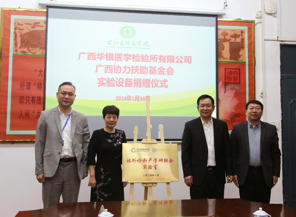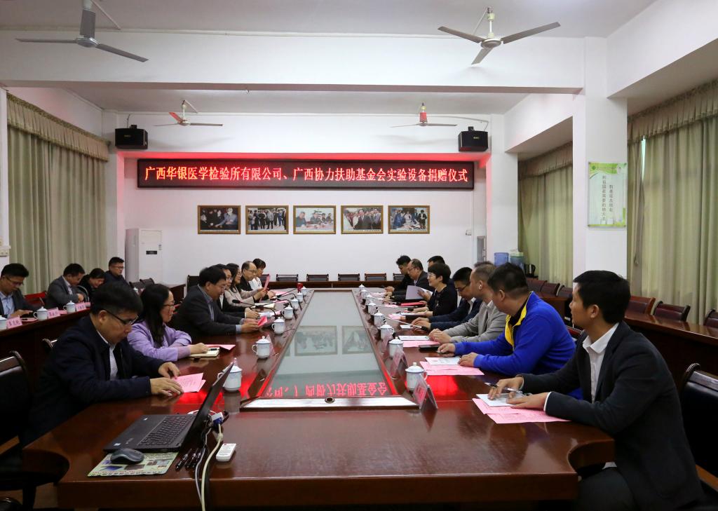 1月16日下午,鸭脖举行广西华银医学检验所有限公司、广西协力扶助基金会实验设备捐赠仪式。