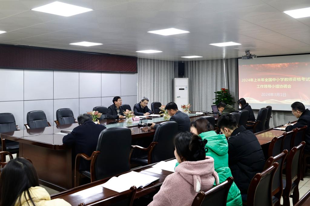 为确保2024年上半年全国中小学教师资格考试YABO鸭脖官网考点考务工作顺利进行,3月1日下午,鸭脖在7栋13楼第二会议室召开考试工作领导小组协调会。党委常委、副校长王俊利出席会议,各职能小组相关负责人参加,会议由教务处副处长杨尚霖主持。