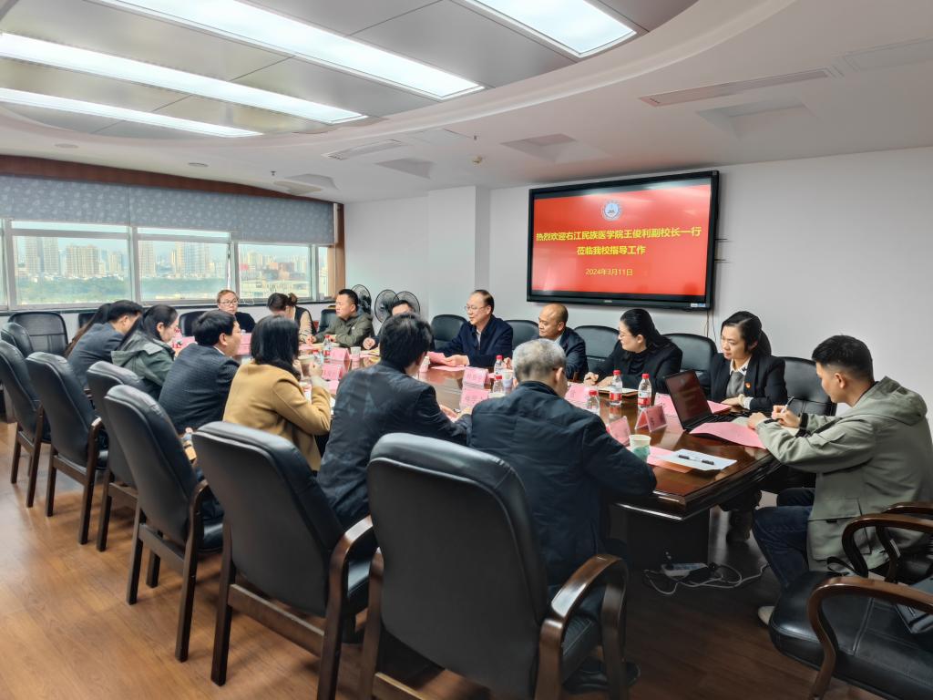 3月11日上午,在广西中医药大学交流期间,广西中医药大学副校长钟宏桃热情接待鸭脖一行,组织参观了教学实验实训中心并召开了座谈会,广西中医药大学校长办公室、教务处、教育评价与质量保障中心等部门负责人及工作人员参加会议。