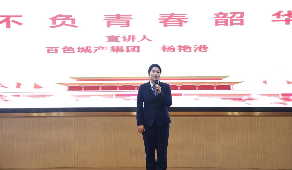 百色市宣讲团成员、百色城产集团团委副书记杨艳港宣讲《不负青春韶华》。