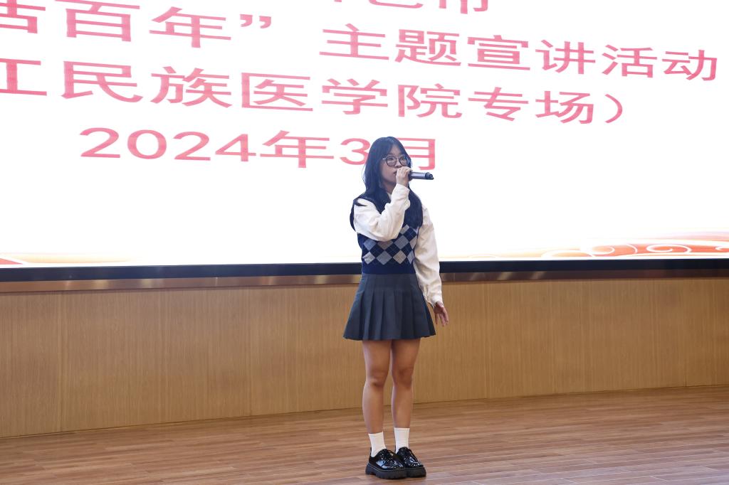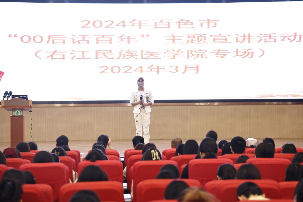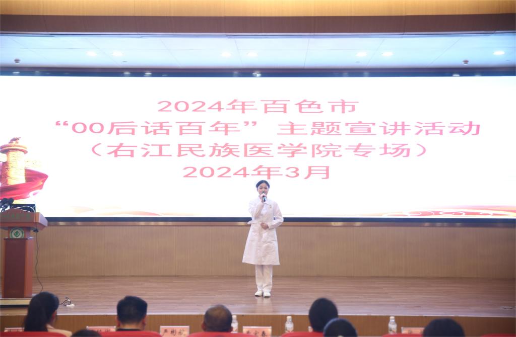 广西壮族自治区“00 后话百年”讲师团成员、百色市宣讲团成员、鸭脖2022级护理学本科1班学生张怡宣讲《用生命诠释最美青春》。