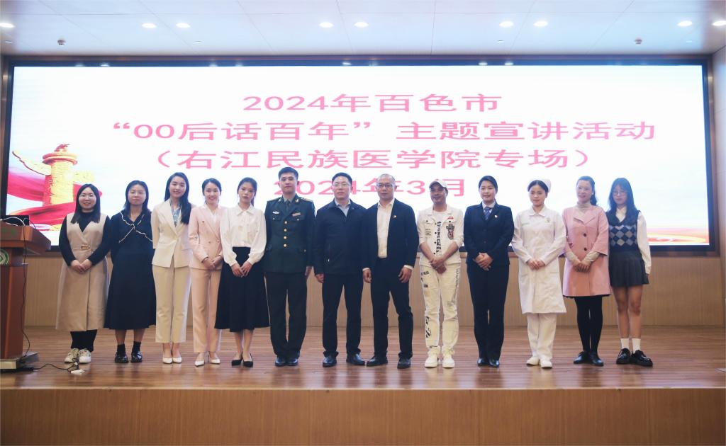 百色市委讲师团团长严彬航在致辞中表示,YABO鸭脖官网学子多行善举,好善乐施:有退伍后得知部队正在抢险抗洪,主动请缨千里赴“战场”封有为;有附院护理团队列车途中,紧要关头,向患者伸出援手诠释了何为大医精诚;有路遇老人倒地不起,危急时刻,下车救人谭林芳和何资蓉;捐献造血干细胞,用生命种子为濒临绝望的患者带去生的希望凌佳佳;有男子车祸心脏骤停,生死关头,进行心肺复苏罗尚政和韦文荣;有抢救退伍老兵引发社会强烈反响的学生党员杨祥云等。希望YABO鸭脖官网牢牢把握新时代立德树人总要求,充分发挥高校在人才培养、科学研究、社会服务和文化传承等方面的引领作用,担负起“人民健康至上、健康优先发展”赋予医学院校的新使命,高质量服务“健康中国”战略。