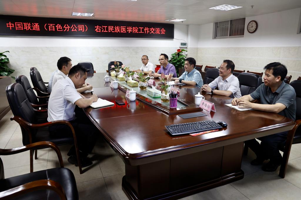 3月26日,中国联通(百色分公司)到鸭脖交流座谈。