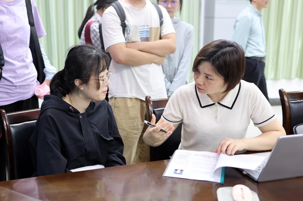 面试官在与求职毕业生交谈。