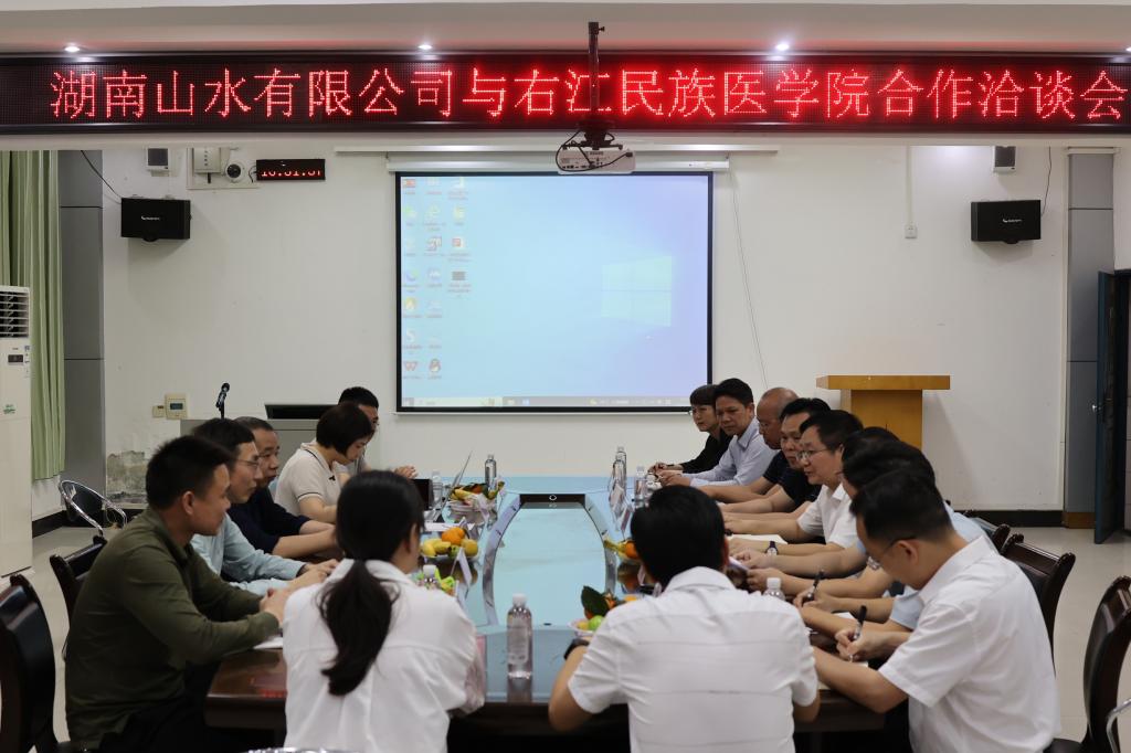 3月28日下午,湖南山水集团董事长丁献山带队到鸭脖开展招聘及合作洽谈。洽谈会在百城校区4栋101室召开,学校党委副书记、校长李雪斌,党委常委、副校长谭盛葵出席,科技处、公共卫生与管理学院、医学检验学院、直属附属医院、附属西南医院相关负责人参加,会议由谭盛葵副校长主持。