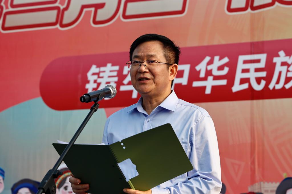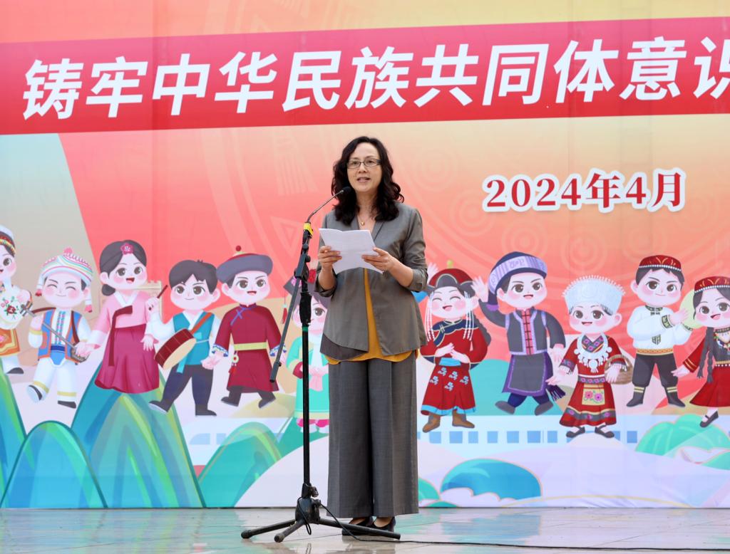 学校党委书记邓砚在仪式上致辞,她希望鸭脖师生能够在丰富多彩的活动中,当好民族优秀传统文化的“传承人”;在常态化协同创建中,做好铸牢中华民族共同体意识的“推动者”;在融入工作学习中,争当民族团结进步事业的“践行者”,要进一步弘扬中华优秀传统文化,创建一个团结和谐、文明进取和富有“大医精诚”底蕴的文化校园。共同参与民族团结进步创建,不断增强“两个共同”“三个离不开”“四个与共”“五个认同”意识,在铸牢中华民族共同体意识示范区建设中担当作为。继续投身民族团结进步教育宣传事业,不断巩固和发展“平等、团结、互助、和谐”的社会主义民族关系,牢固树立民族团结的思想,形成各民族师生共居、共学、共事、共进、共荣的融合氛围,为推进鸭脖铸牢中华民族共同体意识示范校创建工作贡献智慧和力量。