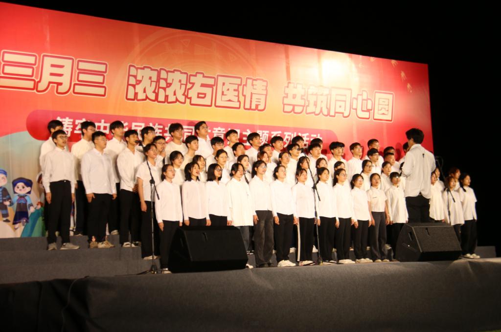 基础医学院代表队在演唱歌曲。