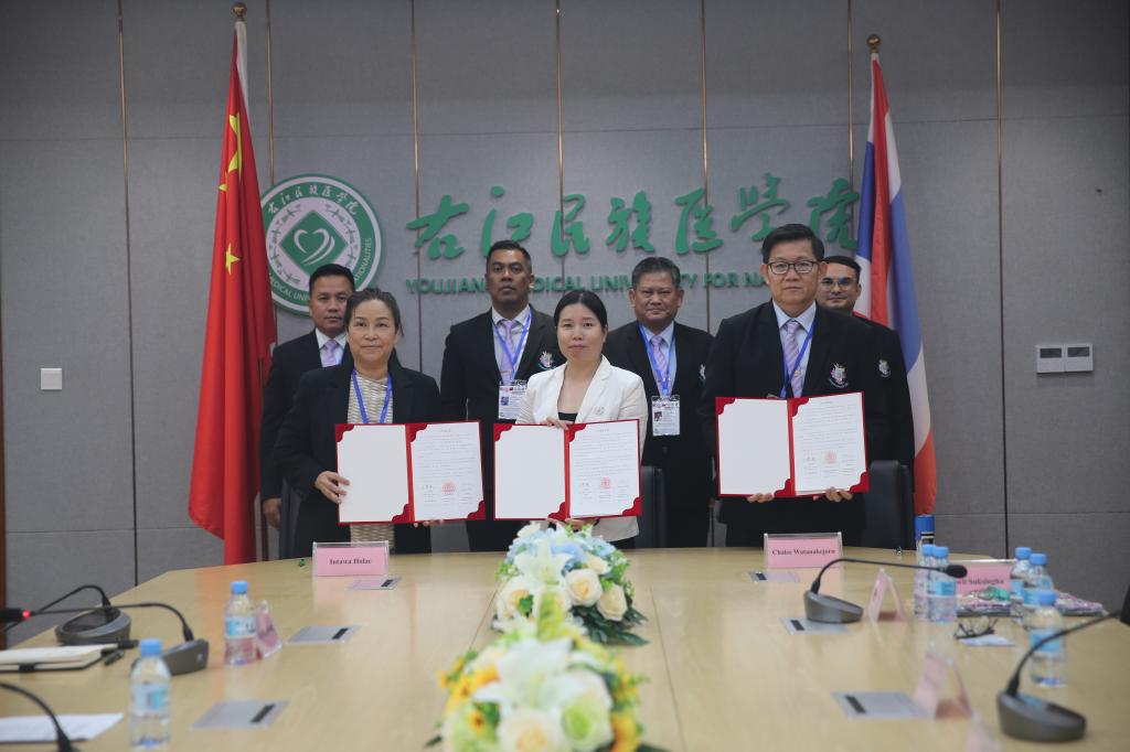 泰国中学校长代表团与鸭脖代表签订学生交流意向书。