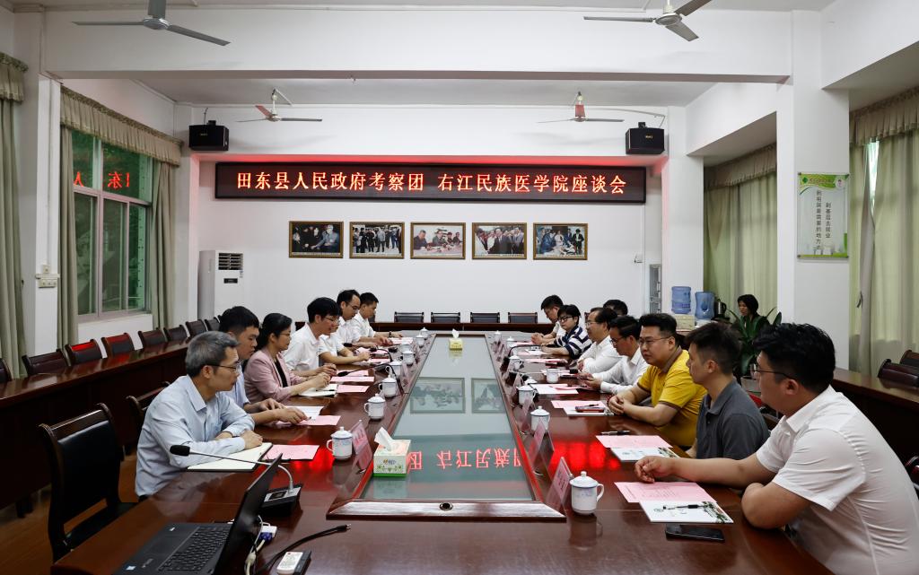 4月11日,田东县政协副主席黄智一行11人到鸭脖开展交流。鸭脖在图书馆二楼会议室召开座谈会。解继胜副校长出席座谈会,院办、发展规划处、教务处、科技处、护理学院、临床医学院等相关负责人参加座谈会。
