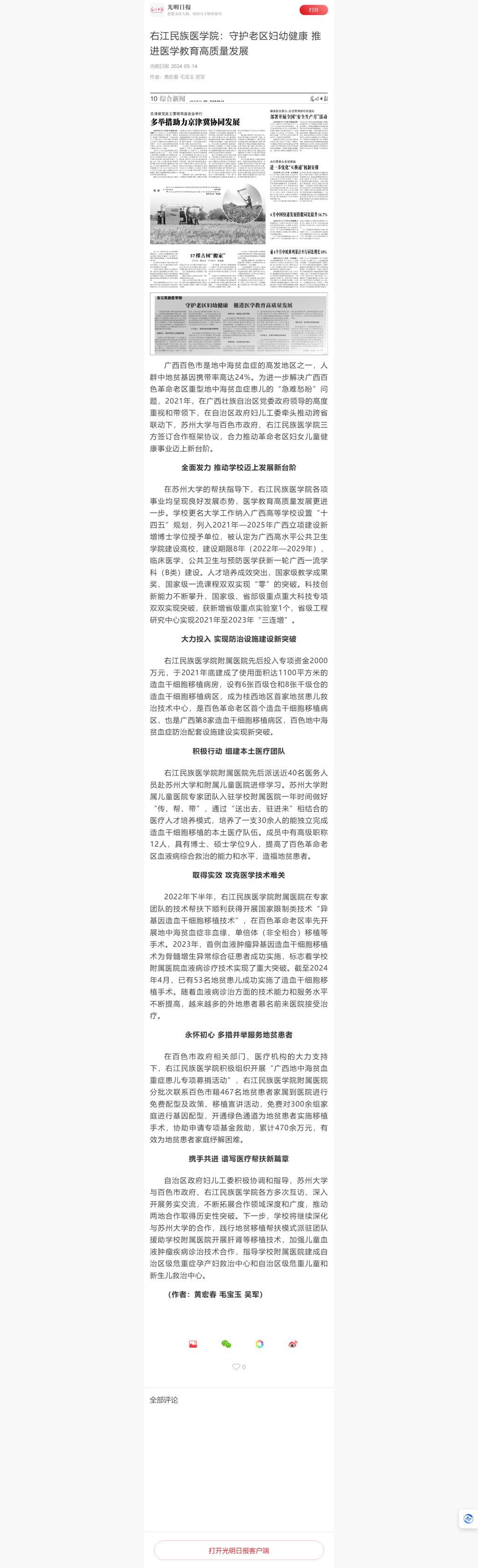 2024年5月14日,《光明日报》刊发报道:YABO鸭脖官网:守护老区妇幼健康 推进医学教育高质量发展。