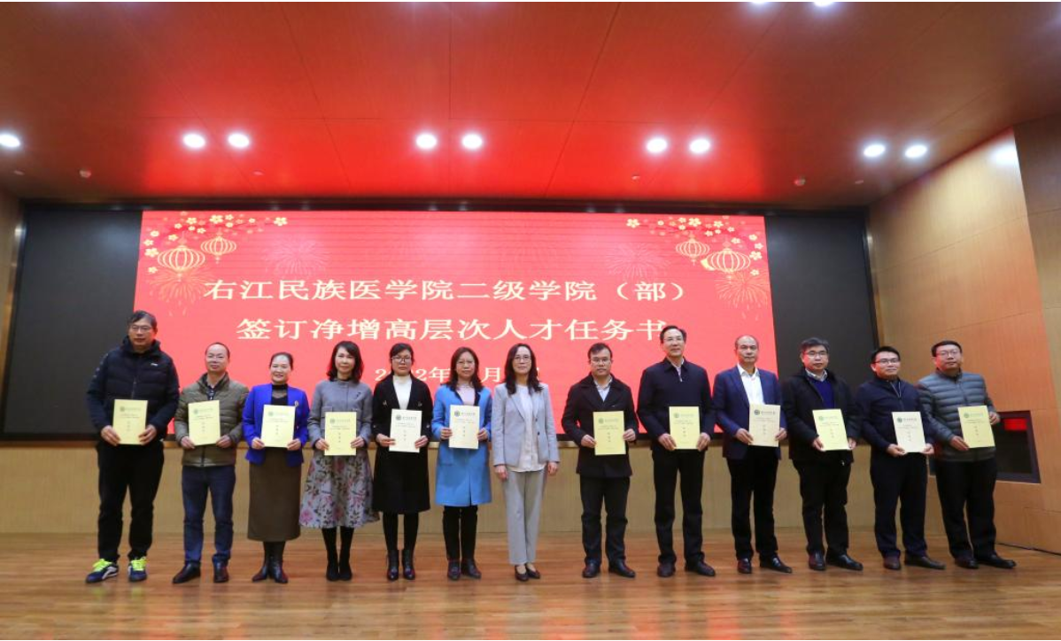 2022年12月8日鸭脖举行人才工作大会,各二级学院(部)分别签订了净增高层次人才任务书