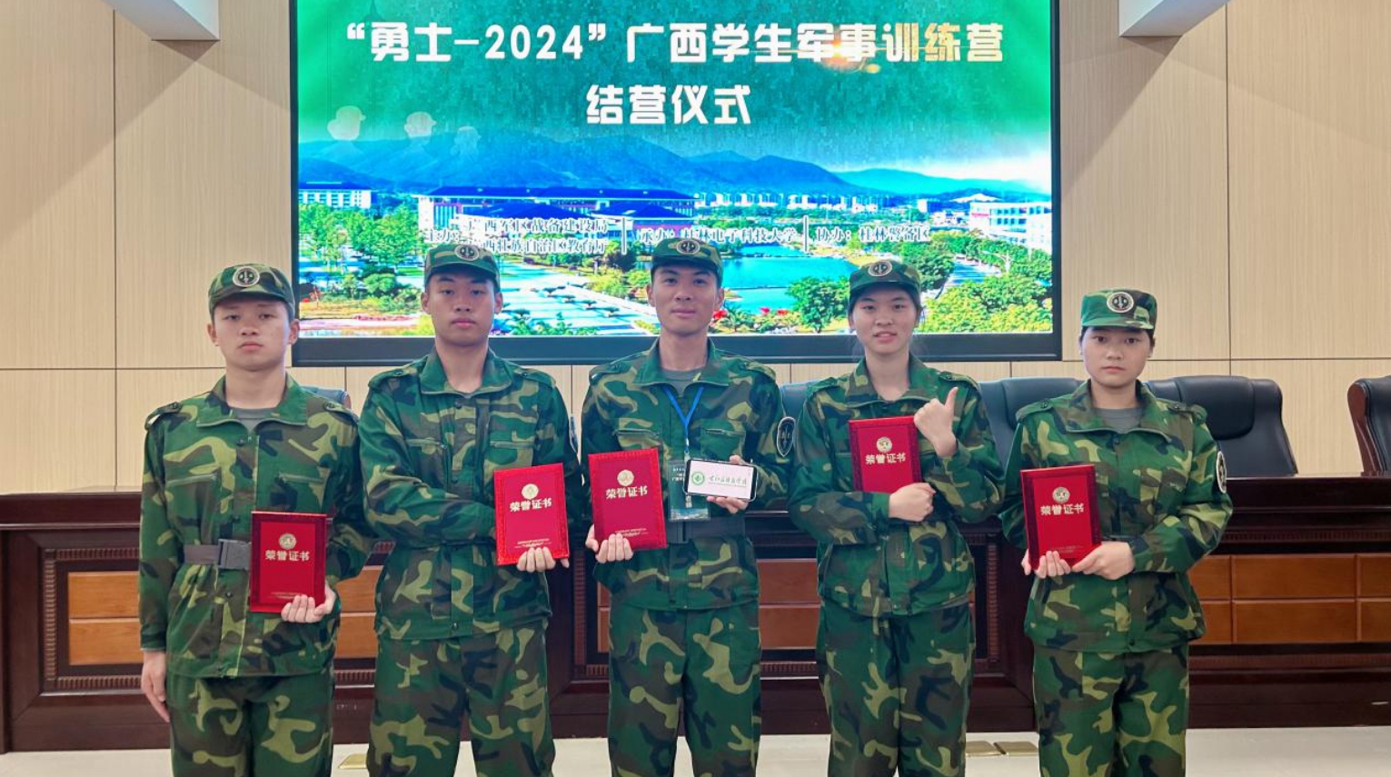 6月2日,由广西军区战备建设局、自治区教育厅联合主办的“勇士-2024”广西学生军事训练营在桂林电子科技大学花江校区圆满落幕,全区共有16所学校参赛。鸭脖参赛学生黄依婵、潘虹、梁殷铭、张笙表现突出,荣获二等奖3项、三等奖1项,充分展现了鸭脖学生的良好风貌和训练成果。