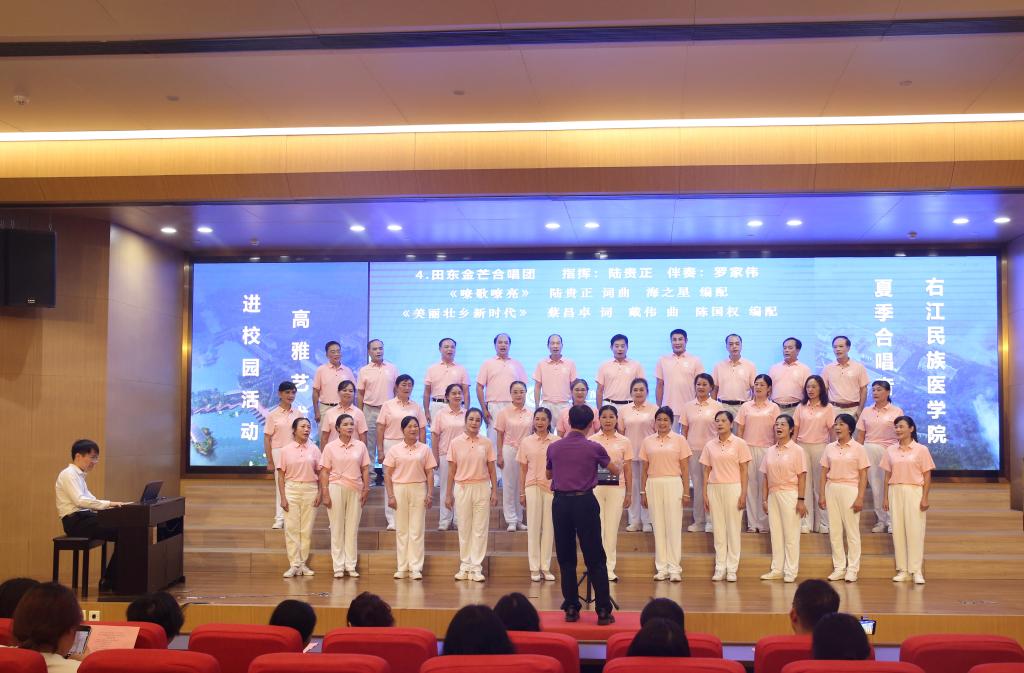 田东金芒合唱团演唱《嘹歌嘹亮》《美丽壮乡新时代》。