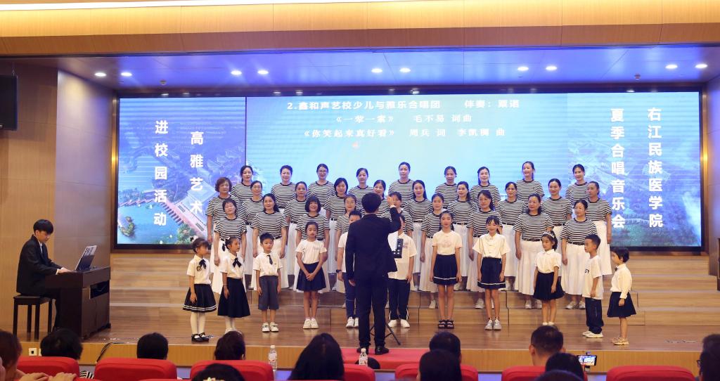 鑫和声艺校少儿与雅乐合唱团演唱《一荤一素》《你笑起来真好看》。
