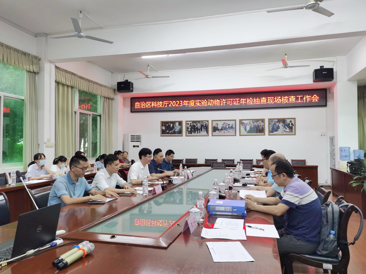 6月11日,在广西实验动物管委会办公室李义芬副主任带领下,自治区科技厅专家组对鸭脖实验动物中心进行年检现场核查。鸭脖党委常委、副校长解继胜,百色市科技局副局长林波出席汇报会。