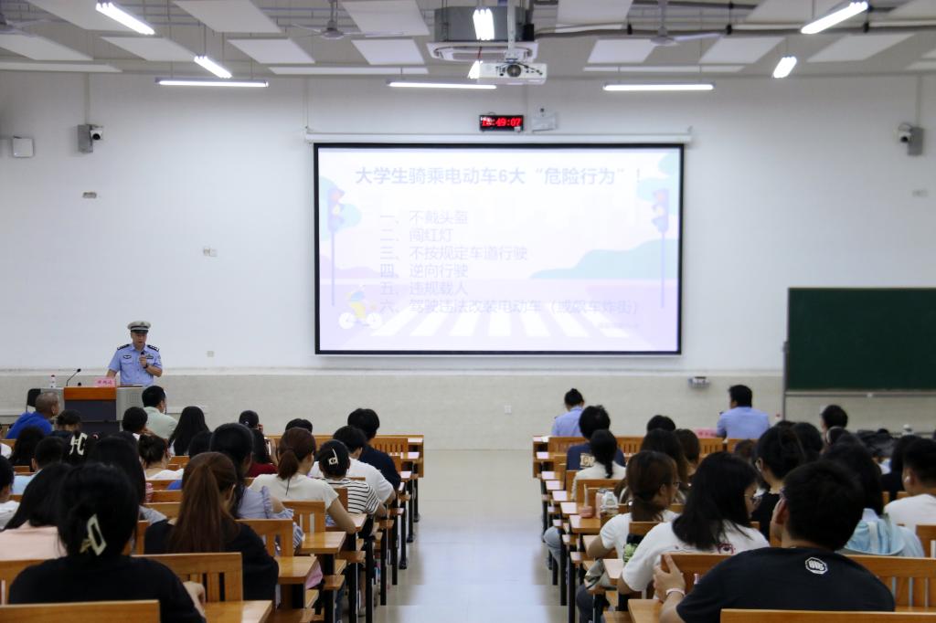 讲座中,公安民警通过图文并茂的方式讲解了交通法律法规和如何辨别常见的邪教活动与诈骗手段,以及如何防范电信诈骗。
